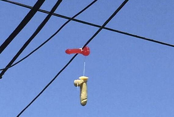 いたずら?「大人のおもちゃ」が送電線に 米ポートランド住民の話題さらう