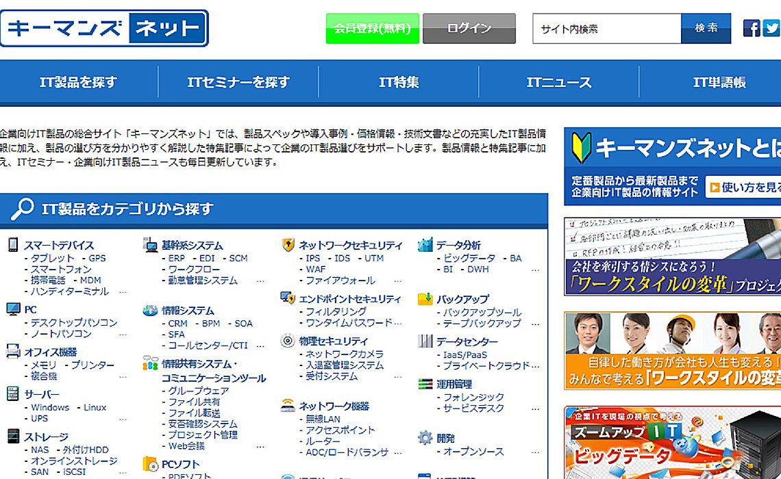 広告主が大手ITベンダー中心のテックターゲットと異なり、中堅・中小ベンダーが多いことや、両サイトの会員の重複が2割弱にとどまる相性の良さもあったが、アイティメディアがキーマンズにこだわったのは、広告主のニーズの変化が大きい。2000年代後半以降、営業や人事、総務、財務などの事業部門にもITが浸透したことで、広告主はシステム部門だけでなく、実務部門のユーザーに広告を打つ必要が出てきたのだ。カタログのように簡便に製品がチェックできるため、実務部門の会員が多く、しかも製品の購買に直結するキーマンズはどうしても手中に収める必要があった。