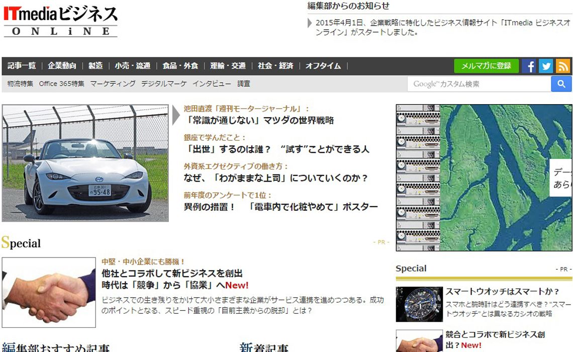 ビジネスオンラインはテクノロジーを重視しつつも、ビジネス戦略を中心とした記事で構成されている