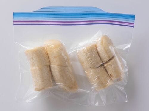 丸ごと冷凍する場合は皮をむいてラップで包み、冷凍用保存袋に入れて空気を抜いて冷凍庫へ。割り箸などを挿して冷凍すれば、アイスバーのように食べられます。