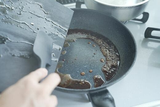 調味液をしっかりと煮詰める(=中火で加熱)と濃い味付けに、あまり煮詰めずに仕上げる(=弱火で加熱)と薄い味付けになるので、火加減で味加減を調整できます。