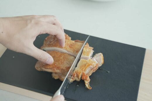 肉を切ったときにでた肉汁をフライパンに戻してタレの味を整えるといいでしょう。