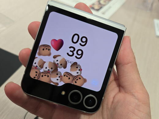 縦折り型の「Galaxy Z Flip6」も同時に発表。ファッション性重視のスマホで、6色のカラーバリエーションを用意する。コンパクトミラーのように閉じた状態で持ち運べるのが魅力だ。こちらも外側に画面があり、待ち受け画面として通知を確認したり、カメラで自撮りする際のプレビューなどが行える。