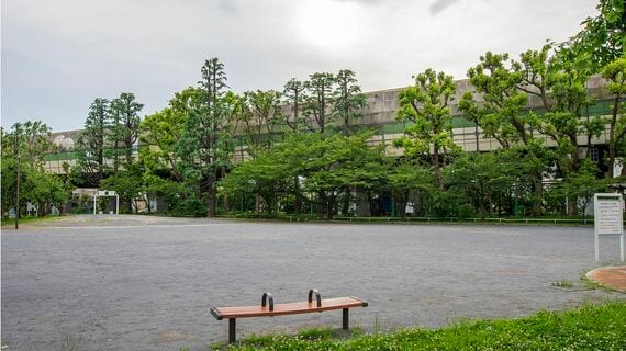 いわゆる山岳トンネルとはまったく異なる構造だ。トンネルの正式名称は「烏山シェルター」という。全長は約245メートル。シェルターの下には公園のような空間が目立つ。