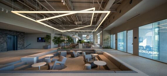 一歩足を踏み入れると、広がるのは木漏れ日が差し込む開放感のあるアメニティスペース。まさか物流施設とは思わない人もいるだろう。そこには、上質なソファやチェアが置かれ、ランチタイムには仲間と談笑しながら昼食を楽しむ人たちが多くいた。観葉植物もあちこちに配置されており、ゆっくりとくつろいでほしいという施設からのメッセージが感じられる。