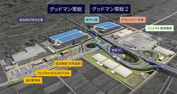 また、「グッドマン常総」の位置するエリアは常総市の官民連携による開発を進めている産業団地「アグリサイエンスバレー常総」の一画にある。産業団地というと一般の人が近寄りがたいニュアンスがあるが、ブックカフェや観光農園、道の駅といった魅力的な施設が集まっている。