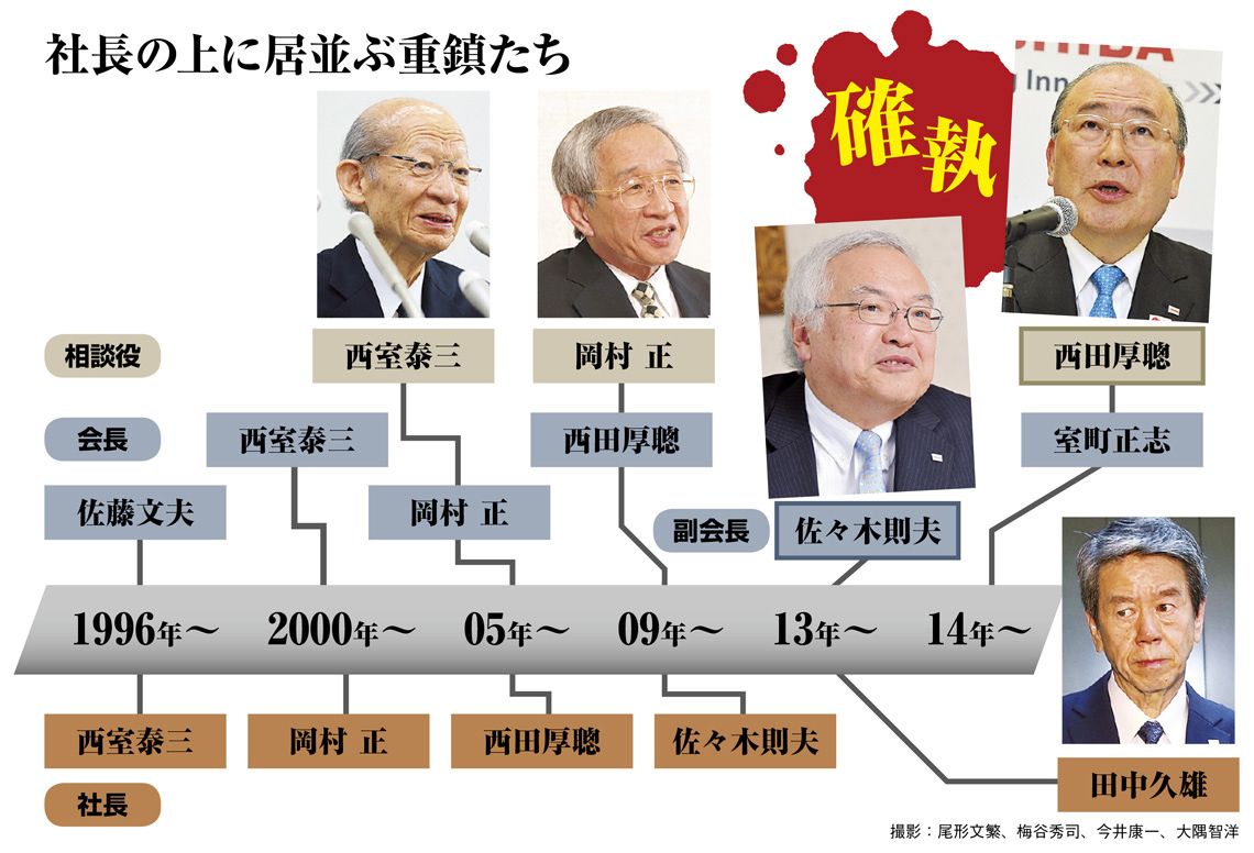田中は社長就任後、「自由に経営している」「やりにくさというものはない」と強調していた。ただ、不適切会計が表面化する以前、西室は「私も相談は受けているが、具体的な数字の相談は西田さんが受けている」と語っている。その話とはどこまで踏み込んだ内容だったのか。