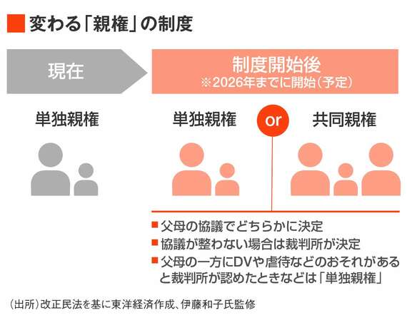 これまで、離婚後は父母のいずれかを子の親権者とする単独親権制がとられてきたが、「離婚後共同親権」が実現すれば、離婚後も子に関する多くの意思決定について、父母双方の同意が必要となる。