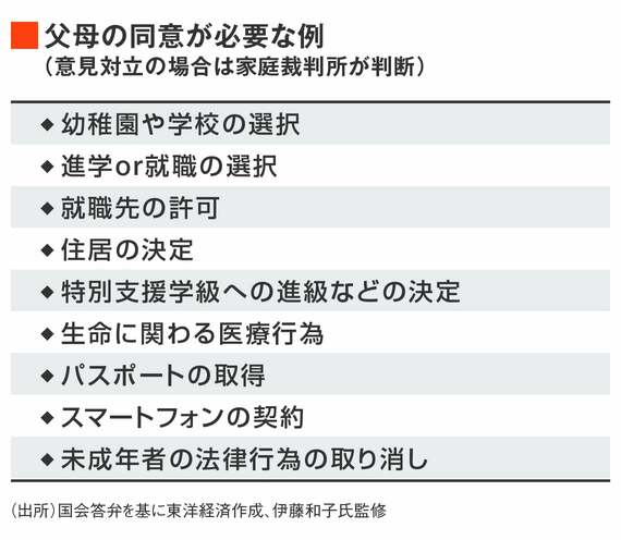 両親の意見が合わない場合は裁判所が決定する、と改正法は規定する。しかし、家庭裁判所は深刻な人手不足で、子に関する事件の裁判所の平均審理期間は現状約1年である。子は進学や住所変更、入院手術などを望んでも、両親のどちらかが反対すれば、身動きが取れず、結果として機会を奪われることになろう。影響は甚大だ。