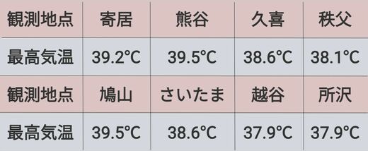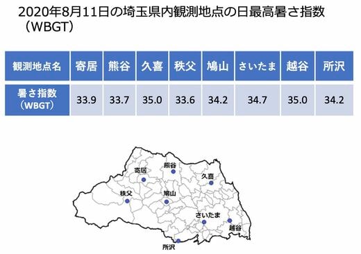 過去、その基準に最も近い状況になったのは埼玉県(2020年8月11日)だが、35を超えたのは同県内の8観測地点のうち2地点だった。