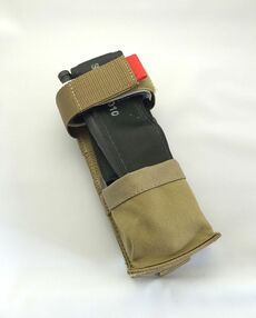 ところが陸自仕様に同盟国の教訓が生かされることはなく、先端は黒いままである。先端は黒いままで、止血時間を記録する帯の部分を白色からタンカラーに変えて、事実上は、陸自専用仕様となっている。これは白いと目立つからだというが、大した差があるとは思えない。