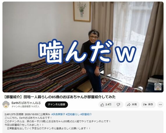 登録者数16.8万人のYouTube『Earthおばあちゃんねる』を、孫の「あーす君」と共同作業で配信する89歳の多良美智子さんは、チャンネル開設当時の思いをそう振り返る。