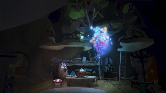 本作でオキュラスのウエアラブル端末のヘッドセット「リフト」を利用すると、ツリーハウスの中に入って360度パノラマの空想世界を見渡すことができ、ハリネズミのヘンリーと共に誕生日を祝うことができる。