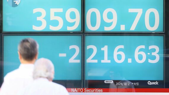 8月2日の東京株式市場で日本株は急落した。日経平均株価は1987年10月のブラックマンデー時の3836円に次ぐ史上2番目の下げ幅となる2216円安を記録、3万5909円となった。