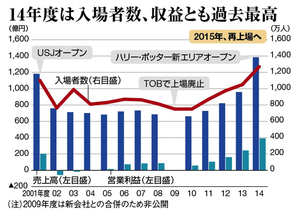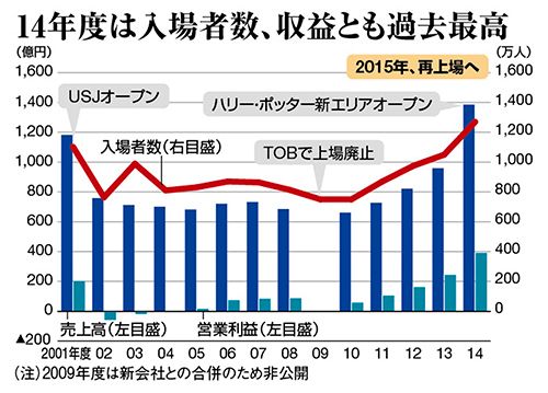 このハリポタを武器にユー・エス・ジェイの業績は絶好調。2014年度の入場者数は1270万人を記録。営業利益は2年連続で過去最高を更新した。