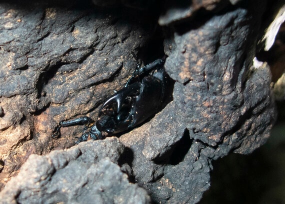 「オオクワガタはエサを食べるよりも、身を隠すことを優先する虫です。体がすっぽりと潜れるウロや大きな樹皮のめくれがあり、そこから樹液が出ていることが絶対条件になります」