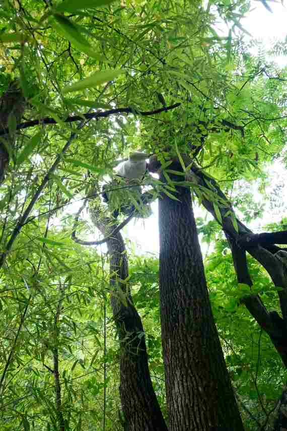 キクリンの姿が消えた。慌てて見上げると、樹上7~8メートルのところに彼はいた。幹に巻きついたフジの木に足をかけ、登っていったのだ。ポカンとして眺めながら、「まるでジャックと豆の木だな」と思った。