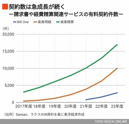 Sansanは5月、請求書発行、経費精算にサービス領域を拡大することを発表。その1カ月後の6月には、ラクスが請求書受領サービス「楽楽請求」の販売を開始すると宣言した。