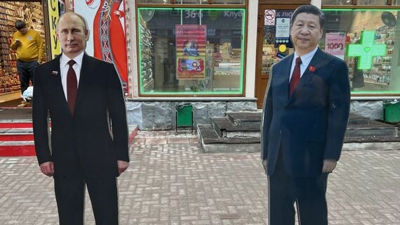 3月、モスクワ中心部の歩行者天国アルバート通りには、ロシアのプーチン大統領と中国の習近平国家主席の等身大パネルが並んで立っていた。実際の身長はプーチン氏が10センチメートル以上低いはずだが、高さはそろえられている。両国の対等な関係を強調するかのようだ。