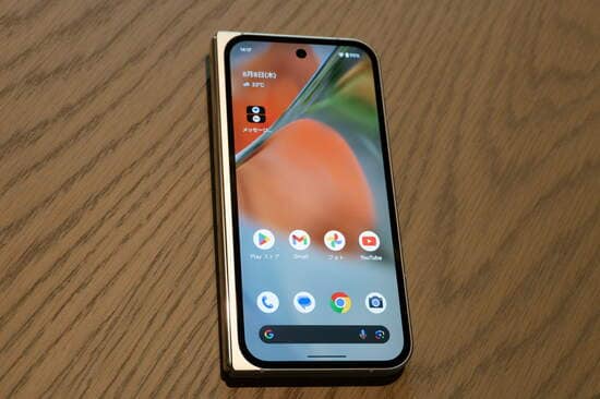 重量は約257グラムと、ディスプレイを内外両面に搭載しているスマホとしては十分軽量な部類に入る。iPhoneの最上位モデル「iPhone 15 Pro Max」の221グラムと比べると、単3形電池×2本ぶんほど重たいが、重量バランスが工夫されているため、開いて両手で持つと、それほど重たくは感じない。