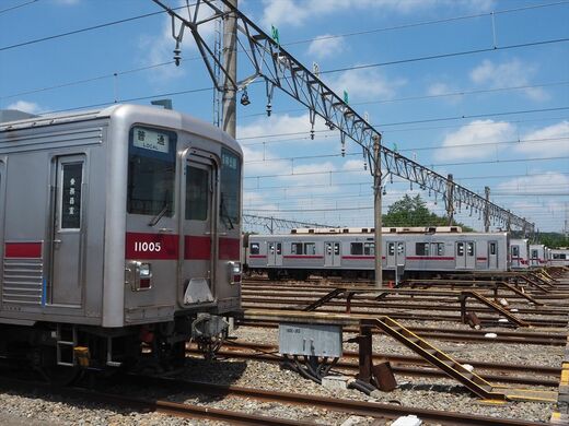 デビュー時とほぼ同じ姿を残す東上線の10000型は、同線の輸送力増強の経過を示す存在でもある。現在見られる10両編成は、当初8両で登場した編成に後から2両を増結したため、この2両は床の色が異なる。外観はほかの中間車両と見分けがつかないが、車内に入れば一目瞭然だ。