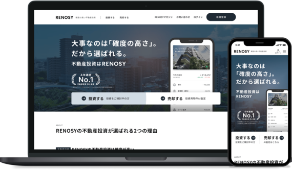 そんな不動産投資市場の伸びに寄与しているのが、テクノロジーを活用したネット不動産投資サービス「RENOSY」だ。RENOSYは、「購入・管理・売却をワンストップで提供することで、不動産での資産形成を簡易にし、運用効果を最大化する」ことを目標に掲げている。