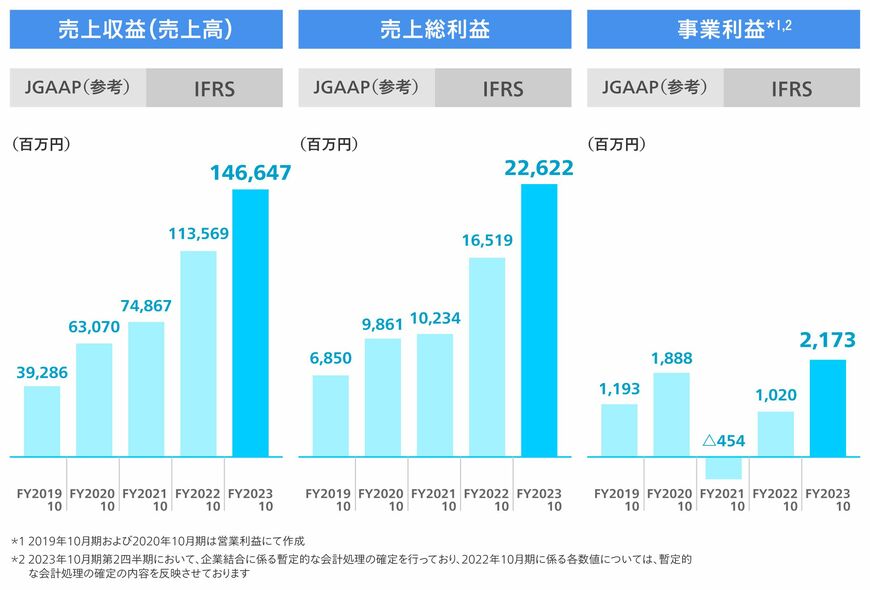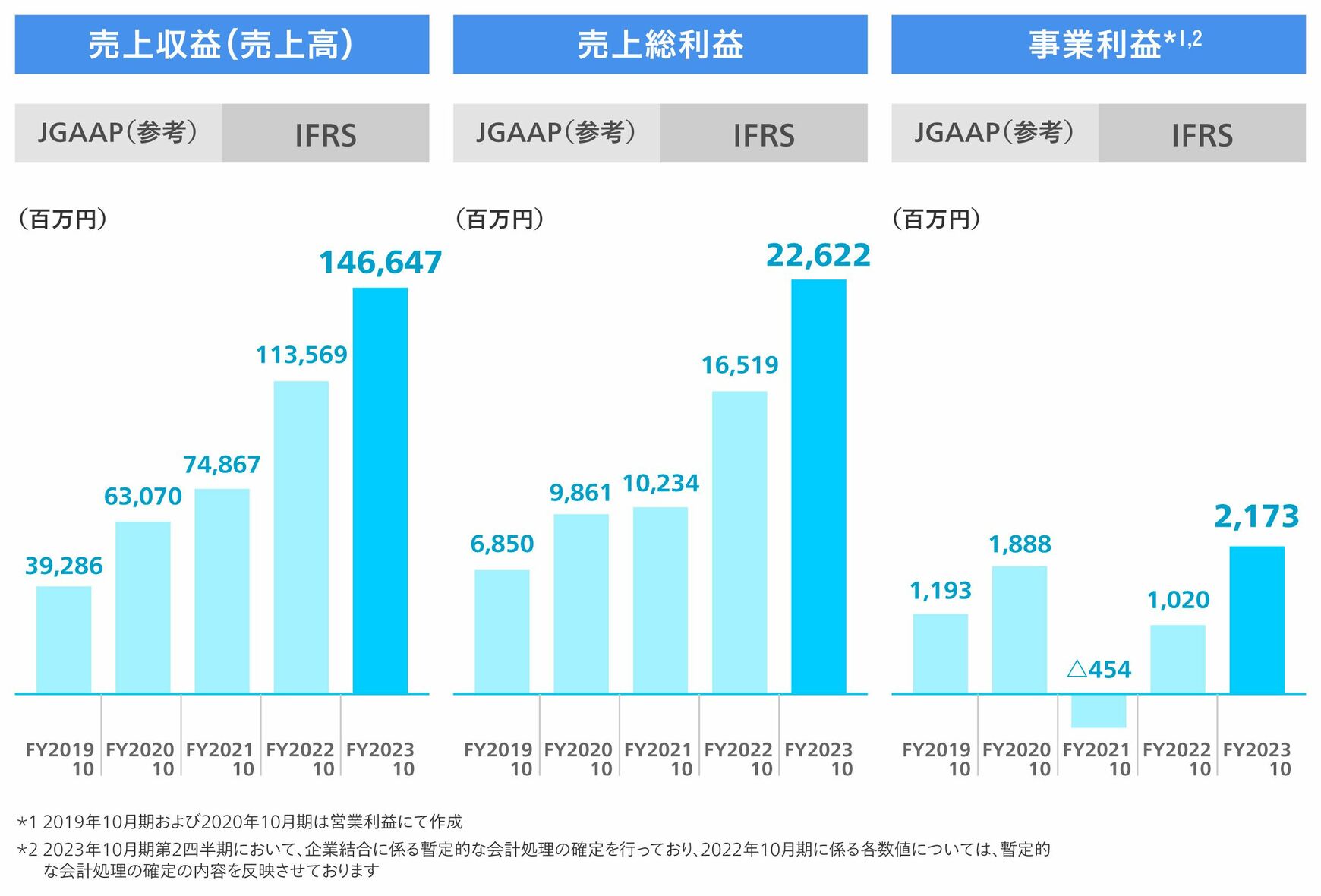 RENOSYを運営するGA technologiesは、不動産×テクノロジーの「PropTech」領域に13年から参入し、創業から5年で東証マザーズ(現・東証グロース)に上場。毎年130%を超える成長率で推移し、グループの創業10年目の節目となる23年10月期には、売上高1466億円、売上総利益226億円、事業利益21億円と過去最高の業績を記録した※2。※2 同社調べ