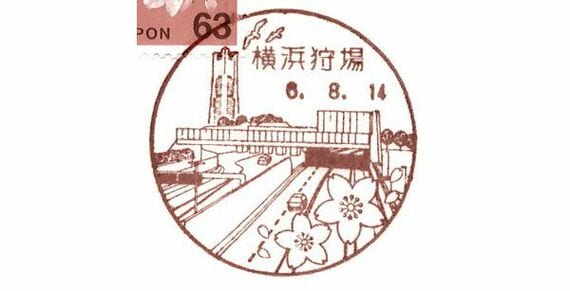 お盆休み期間の8月14日、横浜狩場郵便局(横浜市保土ケ谷区)に出向き、通常の消印とは異なる「風景印」という、周辺の風景が描かれたデザイン入りの消印を押してもらった。