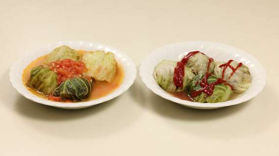 ロールキャベツには、スープの味のベースがコンソメ、ブラウン(ドミグラス)ソース、ホワイトソース、トマトソースがある。キャベツを丸ごとや4つ切りなどにして、すき間に肉だねを押し込むレシピもあるし、オーブンで焼く方法もある。今回は、どちらもキャベツの葉を広げて肉だねを包み、トマト味で煮込むレシピで比較した。肉じゃがと時代を合わせ、高度経済成長期と近年で比較する。