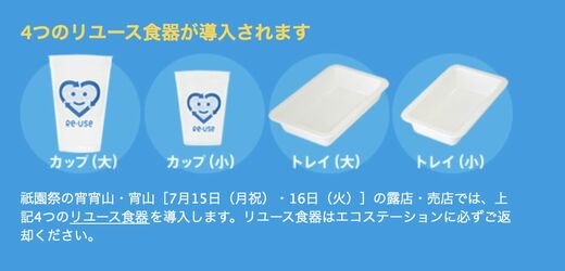 その後、露天商組合とつながりができて協力が得られるようになり、祇園祭でのごみ削減を目指し、リユース食器の利用が進められていった。