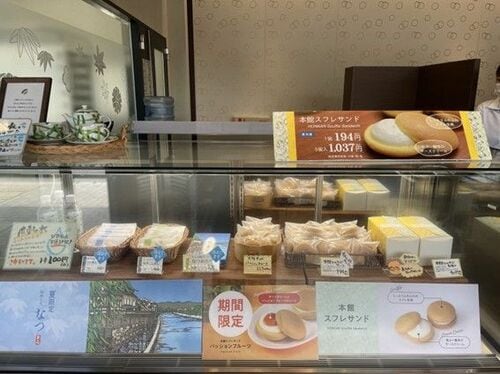 さらには、意外な人気洋菓子商品も。「本館スフレサンド」は、しっとりとした軽い食感のスフレ生地に、やさしい酸味のチーズクリームをサンドした生菓子。おたべ本館でしか手に入れられない商品だが、常連客や、従業員の中にもファンが多い人気商品だそうだ。「おたべ本館」なのに、ここだけの限定商品が、洋菓子の「本館スフレサンド」というのも面白い。