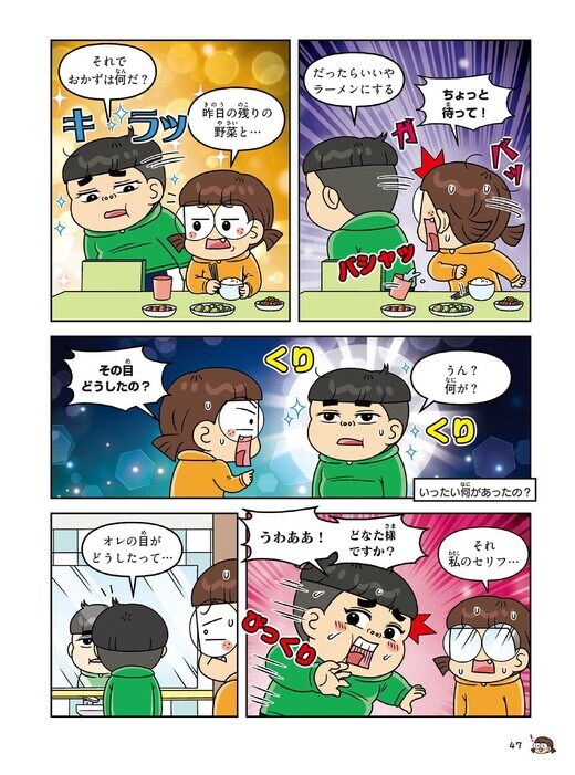 今、小学生の子どもたちに大人気、累計555万部を売り上げるサイエンス学習まんがシリーズの新刊『となりのきょうだい 理科でミラクル きまぐれ☆流れ星編』より『おく深い目元の秘密』をお届けします。