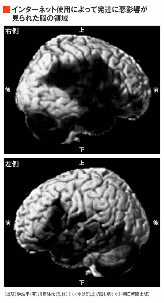 つまり、インターネットを毎日使っている子どもたちは、3年間で脳がまったく発達していなかったのです。脳の広範囲で発達が止まってしまっているわけですから、スマホを使った分だけたくさん勉強をすれば悪影響を補って帳消しにできる、とはいかないのです。