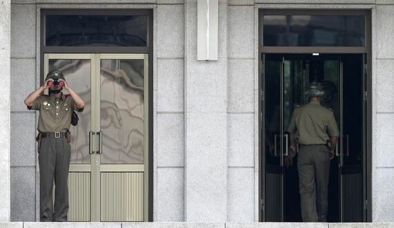 8月20日、韓国軍は北朝鮮に向けて数十発の砲弾を発射した。写真は板門店の北朝鮮兵士。昨年7月撮影(2015年 ロイター/KIM HONG-JI)
