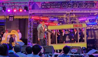 新宿三井ビルディングで行われる会社対抗のど自慢大会は、今年で47回目。ビル竣工の翌年から続く夏の風物詩だ。あまりのクオリティの高さと熱狂度が注目され、近年ではSNSでも広く話題になっている。今回は過去最大となる58社106組が参加し、20組がこの日の決勝に進んだ。