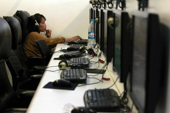 8月26日、調査会社IDCは2015年のPC出荷台数見通しを下方修正した。写真はバンコクのネットカフェで2010年9月撮影(2015年 ロイター/Sukree Sukplang)