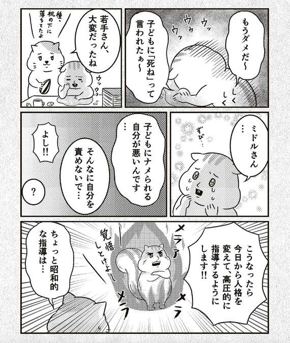 先輩教員から「それくらい自分で注意できないと、これからやっていけないよ」なんて言われた日には、若手さんは「やっぱり私、教員に向いてないんだろうか」などと諦めモードになってしまいます。必要以上に追い詰めすぎないようにしたいものです。