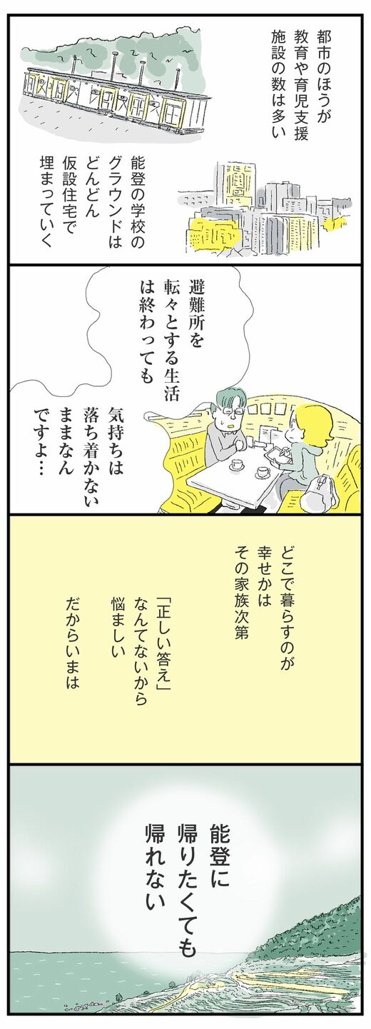 ライフ #ほしいのは「つかれない家族」 前の記事 次の記事 「4人家族がバラバラに」 日常が壊れた人々の現実 公務員の妻は能登、夫は金沢の賃貸、娘は学校の寄宿舎… 3分で読める 公開日時:2024/09/08 09:00 ハラユキ イラストレーター、コミックエッセイスト フォロー 1/11 PAGES 2/11 PAGES 3/11 PAGES 4/11 PAGES 5/11 PAGES 6/11 PAGES 7/11 PAGES 8/11 PAGES 9/11 PAGES 10/11 PAGES 住まいが定まっても落ち着かない気持ち 次ページが続きます 11/11 PAGES