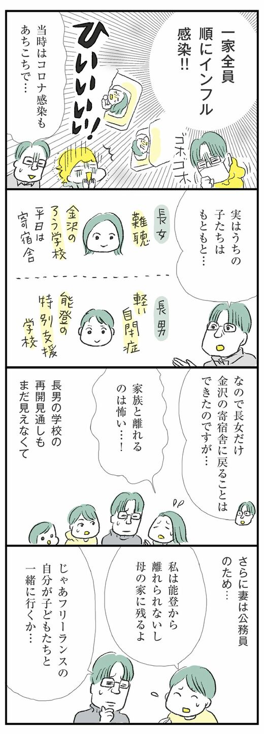 ライフ #ほしいのは「つかれない家族」 前の記事 次の記事 「4人家族がバラバラに」 日常が壊れた人々の現実 公務員の妻は能登、夫は金沢の賃貸、娘は学校の寄宿舎… 3分で読める 公開日時:2024/09/08 09:00 ハラユキ イラストレーター、コミックエッセイスト フォロー 1/11 PAGES 2/11 PAGES 3/11 PAGES さまざまな事情があり 次ページが続きます 4/11 PAGES 5/11 PAGES 6/11 PAGES 7/11 PAGES 8/11 PAGES 9/11 PAGES 10/11 PAGES 11/11 PAGES