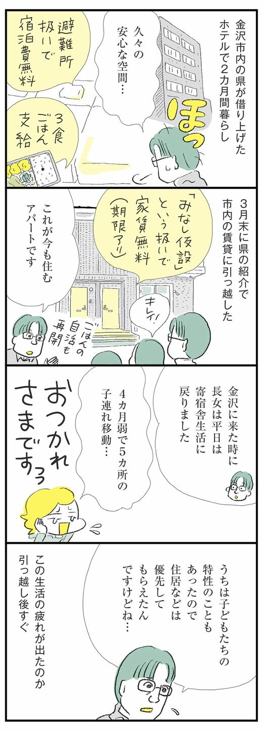 ライフ #ほしいのは「つかれない家族」 前の記事 次の記事 「4人家族がバラバラに」 日常が壊れた人々の現実 公務員の妻は能登、夫は金沢の賃貸、娘は学校の寄宿舎… 3分で読める 公開日時:2024/09/08 09:00 ハラユキ イラストレーター、コミックエッセイスト フォロー 1/11 PAGES 2/11 PAGES 3/11 PAGES 4/11 PAGES 5/11 PAGES 今は「みなし仮設」のアパートに 次ページが続きます 6/11 PAGES 7/11 PAGES 8/11 PAGES 9/11 PAGES 10/11 PAGES 11/11 PAGES