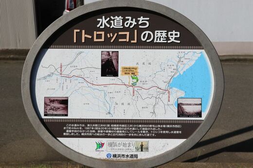 表示板については、「2007年に、横浜が近代水道の創設から120年を迎え、水道局ではさまざまな記念事業を実施しました。その一環として横浜水道創設水道導水路(水道みち『トロッコ』の歴史)の案内板を設置しました」とのことだ。