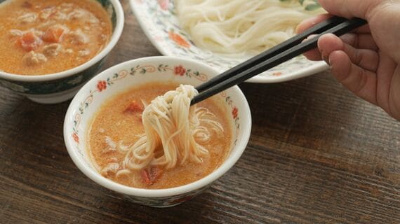 そこで今回はこってりとしたつけダレで食べる「坦々そうめん」をご紹介します。濃厚さを出す練りごまと辛味をつけるための豆板醤さえ準備すれば、簡単につくれるレシピです。