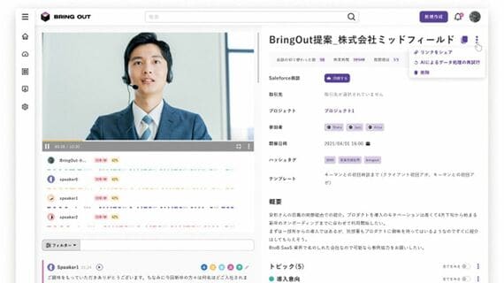 「Bring Out」のダッシュボード。商談の会話を解析し成約までの最短距離をAIが示す