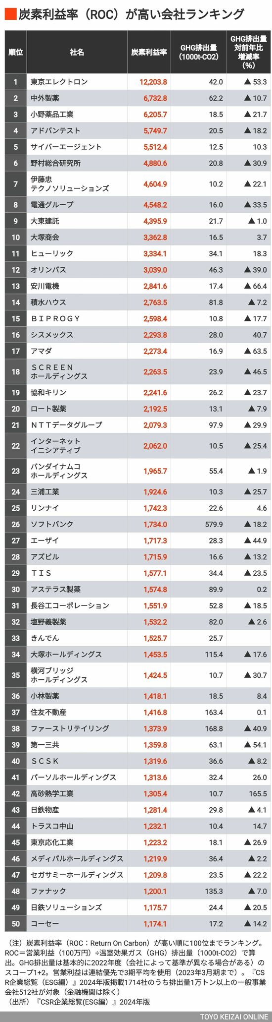 ビジネス #CSR企業総覧 前の記事 次の記事 「炭素利益率の高い企業」ランキングTOP100社 排出量の多い企業は業績にも影響する時代が来る 5分で読める 公開日時:2024/09/18 04:00 岸本 吉浩 東洋経済 記者 フォロー 1/4 PAGES 2/4 PAGES 3/4 PAGES 1〜50位 次ページが続きます 4/4 PAGES