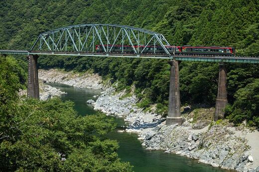 土讃線はこれより非電化区間となって山間に分け入り、まずは吉野川流域へと讃岐山脈を越える。速度は平坦区間の時速120km台から時速80kmに近い時速70km台まで下がるものの、25パーミル勾配に右へ左へ半径300mの曲線が絶え間ない中を振子を駆使して突進する速度感は、決して遅いと言えたものではない。