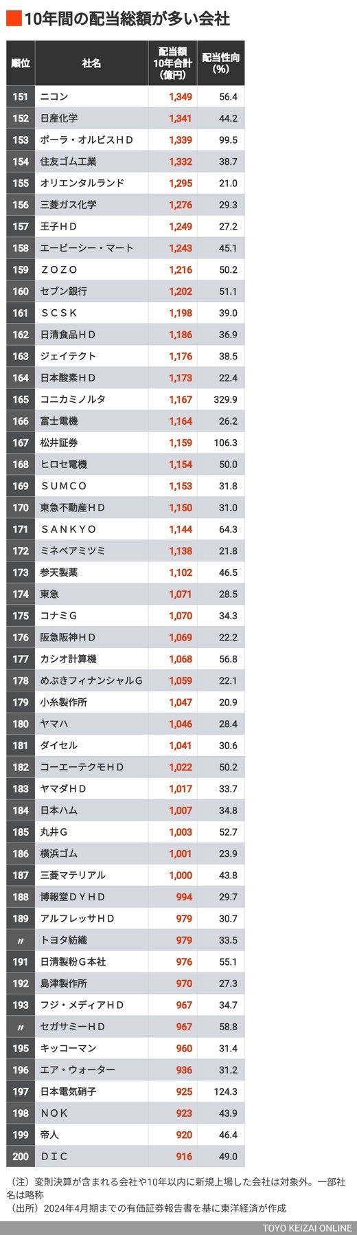 政治・経済・投資 首位は合計7兆円超「10年間配当総額」TOP300社 10年で1兆円を超える配当を出したのは19社に 2分で読める 公開日時:2024/09/21 05:00 東洋経済オンライン編集部 フォロー 1/7 PAGES 2/7 PAGES 3/7 PAGES 4/7 PAGES 5/7 PAGES 10年間の配当総額151~200位 次ページが続きます 6/7 PAGES 7/7 PAGES