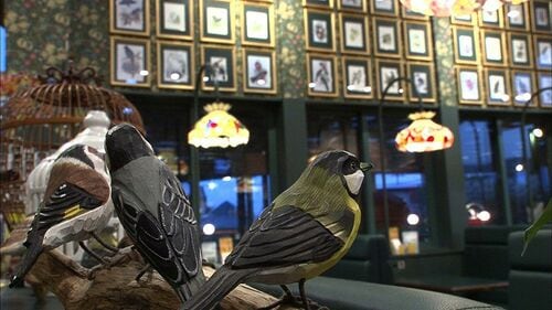この「峠下総本店」は別名「果樹園レストラン バードウォッチング館」という。このバードウォッチングは、同店独特のテーマで「世界の鳥たちをテーマにカラーはラッピグリーンで統一」(ラッキーピエロHPより)してある。