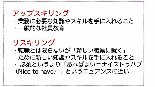 まとめると、すべての会社員は、アップスキリングはもちろんのこと、リスキリングも必要である。「マスト(Must)」のみならず「ナイストゥハブ(Nice to have)」の知識やスキルも手に入れていこう。お金と一緒で、本当に必要になってから貯めようとしても(身につけようとしても)遅いからだ。
