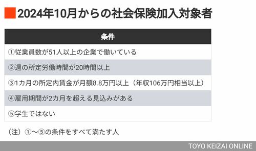 10月から、パートやアルバイトなどで働く人の社会保険加入の対象が広がりました。これまでは101人以上の企業が対象でしたが、今回の改正により、従業員数51人以上の企業で働き、かつ労働時間や賃金などの要件も満たす人は、パートやアルバイトでも自分の勤務先で健康保険と厚生年金(合わせて社会保険)に加入することになります。