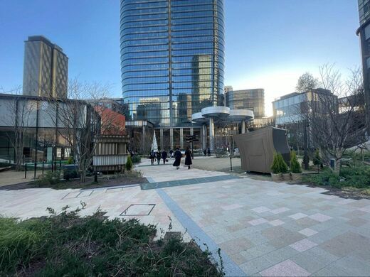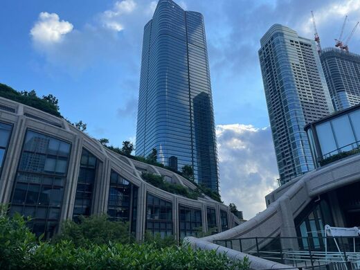 例えば、麻布台ヒルズ。中〜高層階にはオフィスフロアがぎっしりとあり、さらに日本初進出のアマンの姉妹ホテルブランド「ジャヌ東京」も入る。低層階で目を引くのは世界的建築デザイナーであるトーマス・ヘザウィックによるきわめて独創性の高い建築。中庭にはさまざまなアート作品が置かれ、植栽も施されて緑豊か。